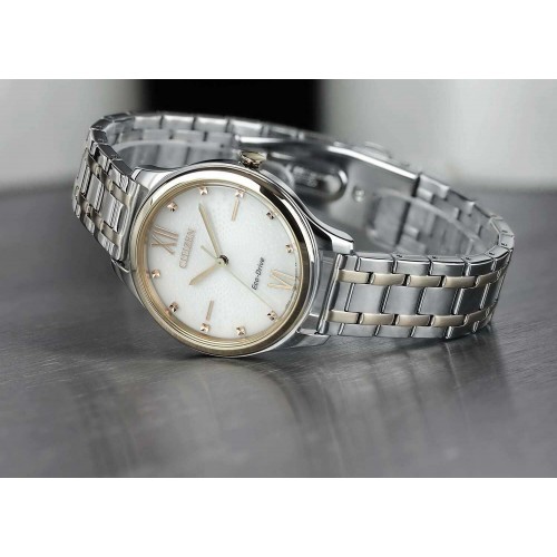 Яркий блеск кристаллов станет идеальным завершением образа успешной бизнес-леди. Eco-Drive. Система Eco-Drive, не требующая замены батарейки. Питание от солнечной энергии, запас энергии на 180 дней. Функция индикации заряда (EOL). Браслет с раскладывающейся застежкой.